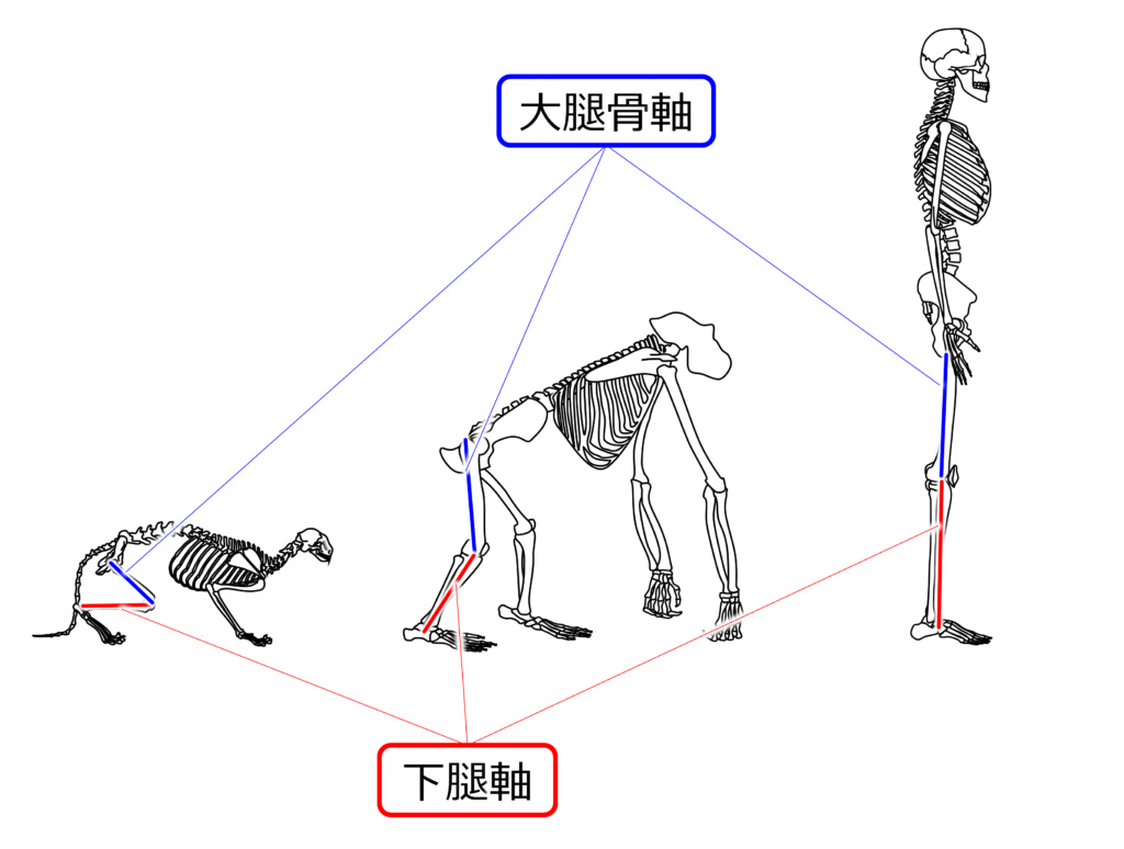 ヒト以外の動物は膝が屈曲しています。