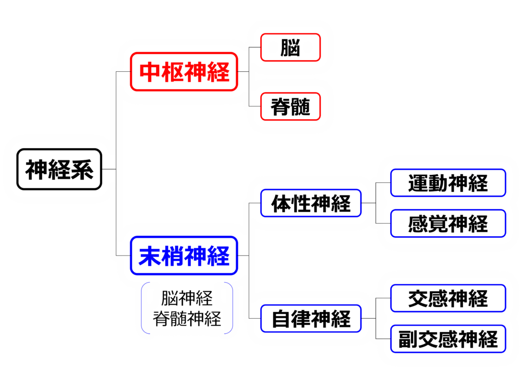 神経系は【中枢神経】と【末梢神経】の2つに分類されます。