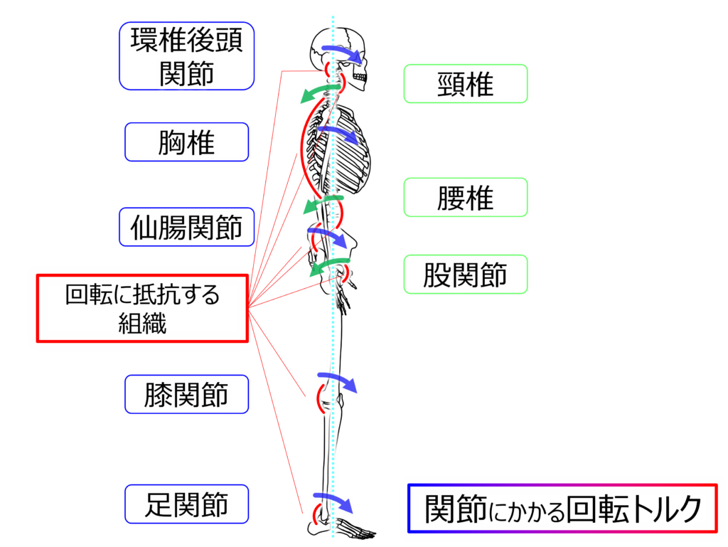 また身体の各関節には重力によって回転する力が常にかかっています。