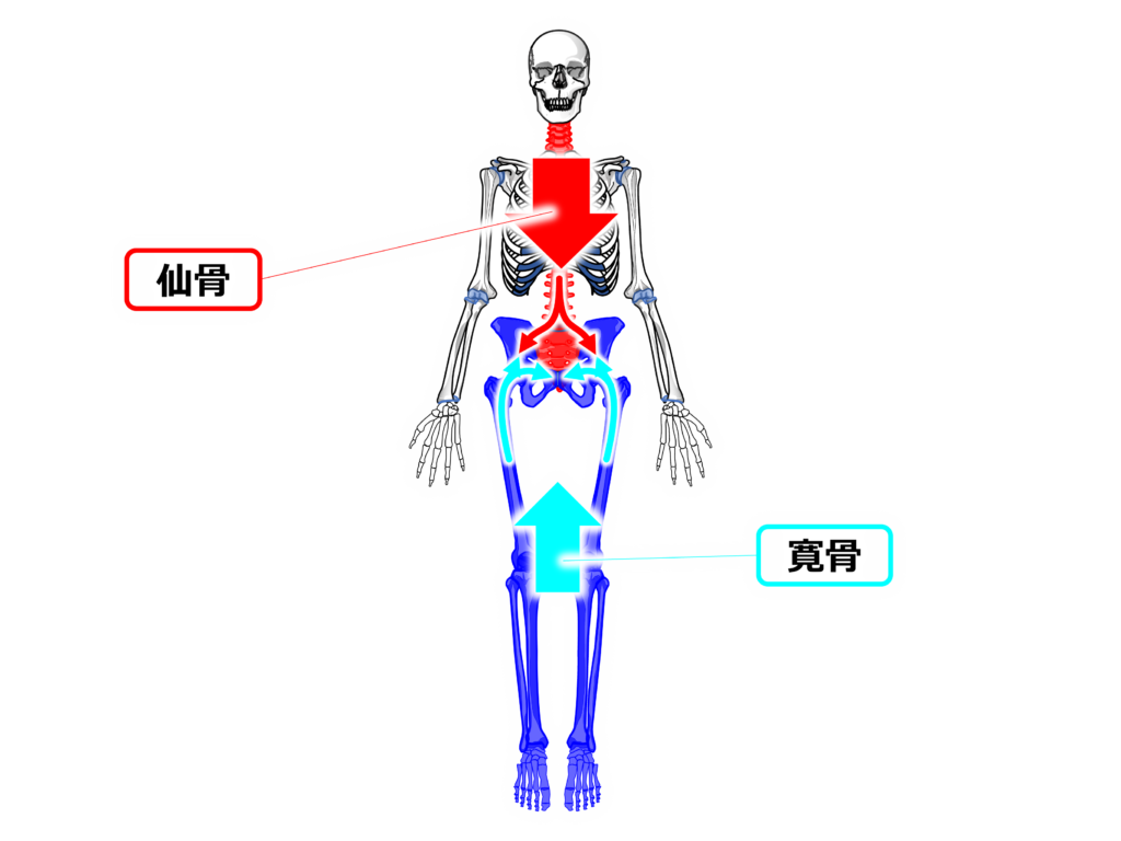 仙腸関節は【仙骨】【寛骨】からなる関節で上半身からの過重と立位・歩行時の床からの反力という衝撃の緩衝や荷重の伝達を担う非常に重要な関節となります。