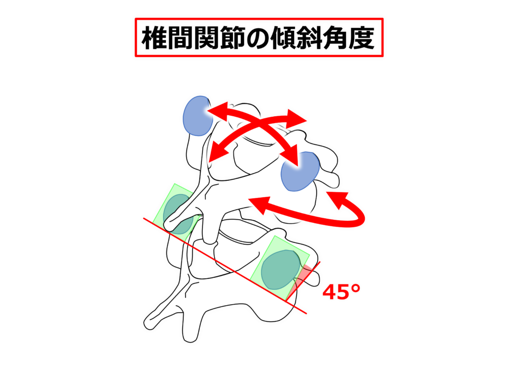 側屈側では下位椎骨の上関節突起に対して上位椎骨の下関節突起が後下方に滑ります。