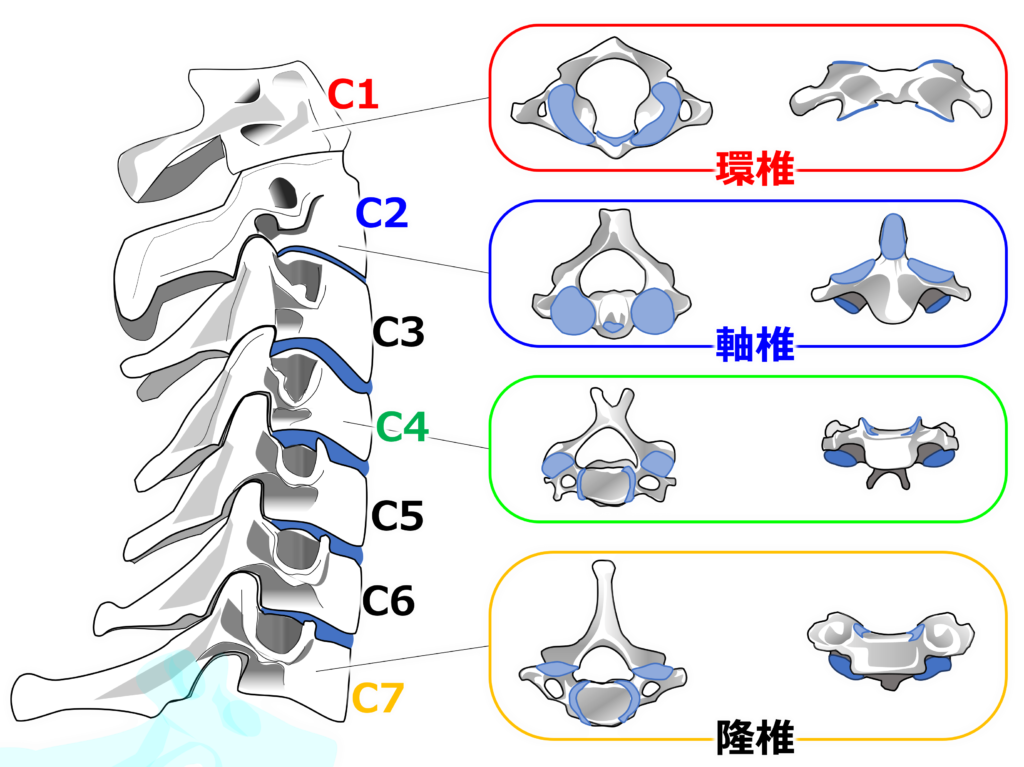 頸椎は全部で7個ありますが、7個すべてが同じ構造ではありません。