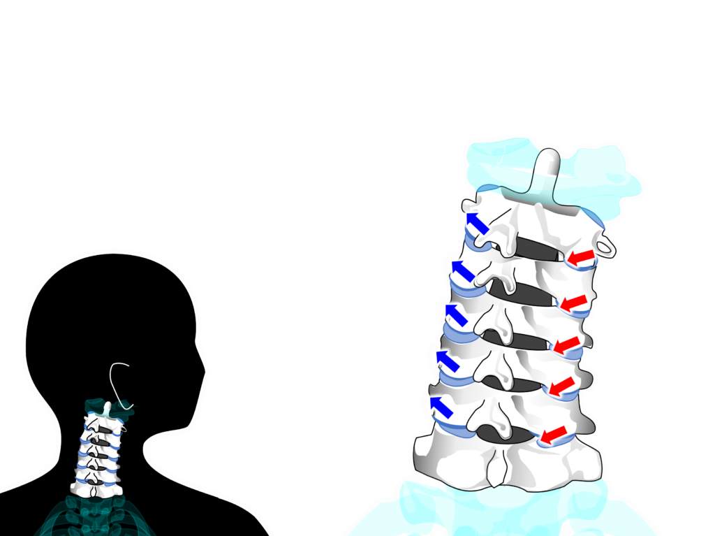 【環椎後頭関節】【環軸関節】左右の【椎間関節】が複合的に運動することで頸椎は屈曲・伸展・側屈・回旋といった三次元的な動きを可能にしています。